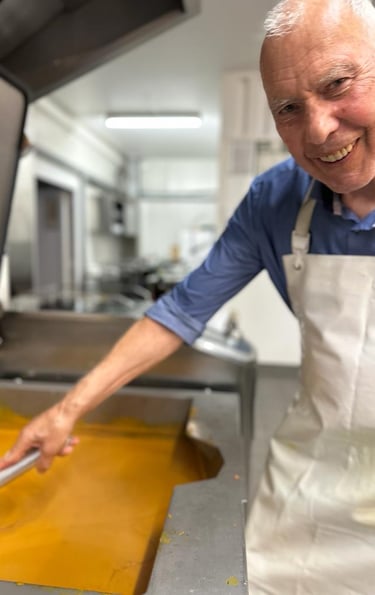 Der Tagungsraum „Simon“ im Erdgeschoss erinnert an Simon Klink – Mitgründer, leidenschaftlicher Handwerker und herzlicher Gastgeber. Mit seiner Tatkraft, und seiner Liebe zu gutem Essen hat er das geprägt, was uns heute ausmacht.