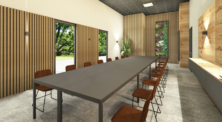 Unser 50qm² großer Tagungsraum für bis zu 20 Gästen liegt im neuen Gewerbegebiet zwischen Kluftern und Immenstaad am Bodensee. Er ist mit modernster Technik ausgestattet und bietet eine private und ruhige Lage, mit eigener Terasse zum verweilen in Pausen oder kreativen Phasen.