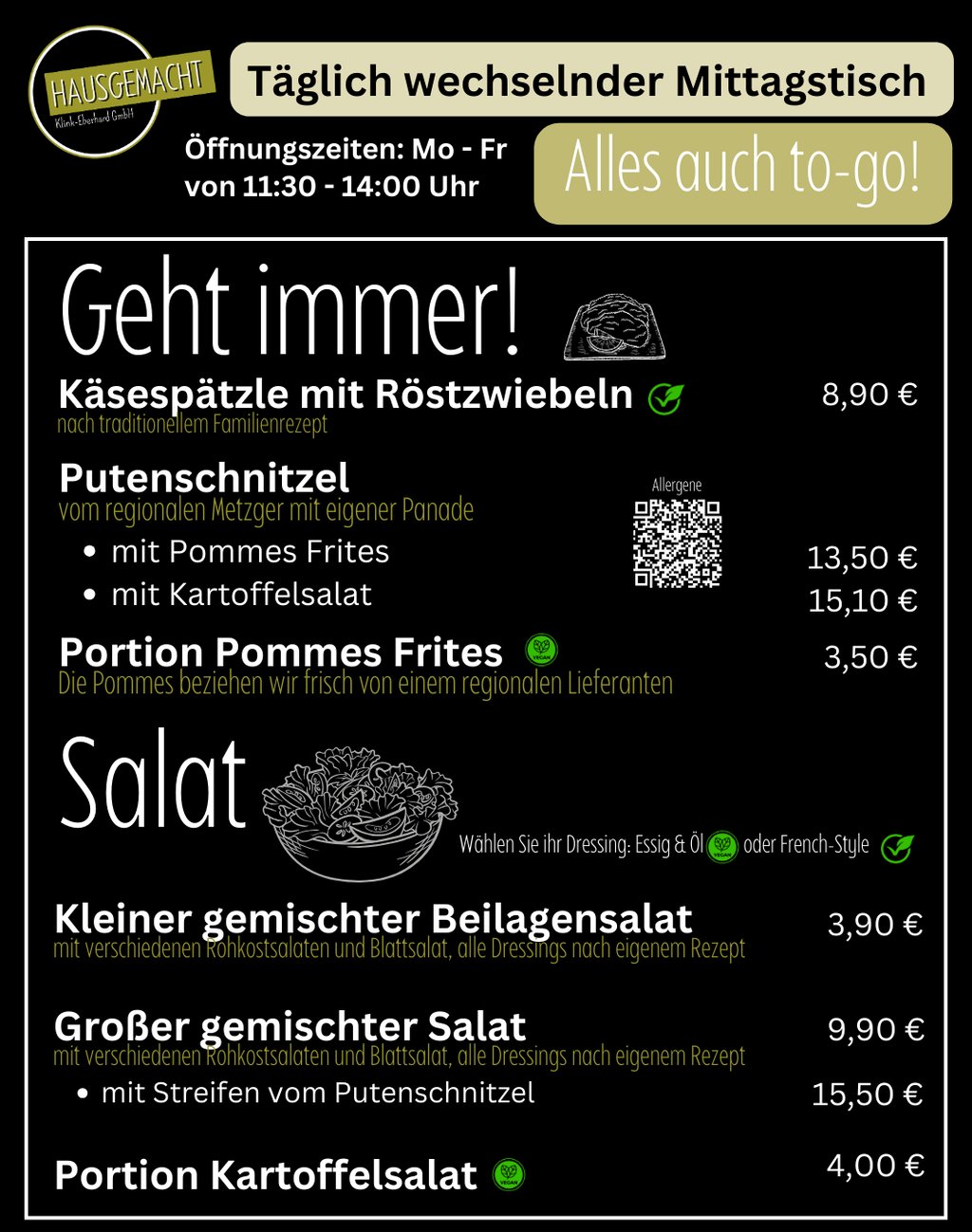 Komm vorbei, lass den Stress hinter dir und gönn dir eine Mahlzeit, die Leib und Seele gut tut. Wir laden dich herzlich ein, uns in Immenstaad am Bodensee zu besuchen und dich von der Qualität unserer hausgemachten Speisen selbst zu überzeugen. Das gesamte Team von Hausgemacht freut sich darauf, dich bald als Gast bei uns begrüßen zu dürfen!